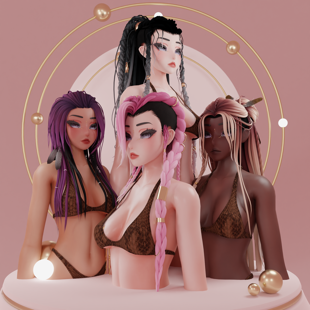 ➤ #3 got two different kinds of ponytail. One with braids and one with dreads (see pictures). Braids are using more polygons (see below)